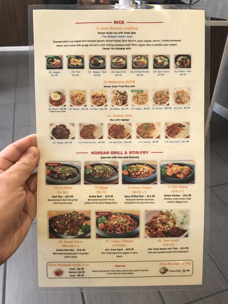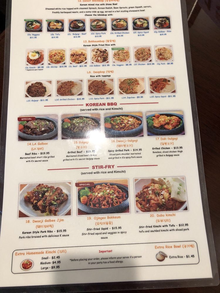 K Restaurant Menu
